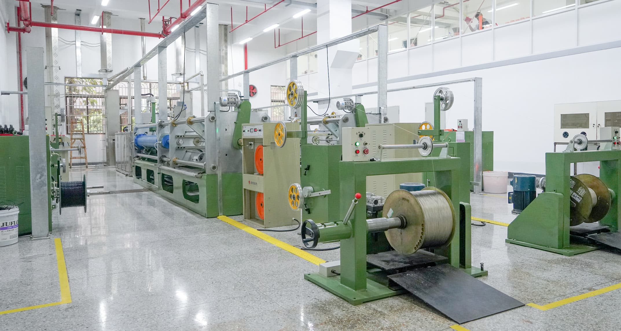 豐泰建有3.2萬平方米的廠房面積,廠房設(shè)有新型推擠車間,新型數(shù)字化擠出車間,PTFE研發(fā)車間,氟橡膠/硅橡膠車間,高速編織車間,自動化絞線車間。車間內(nèi)設(shè)高溫擠出線纜,氟橡膠線纜,硅橡膠線纜,交聯(lián)輻照類線纜機組及PTFE特種推擠機組60多臺,配套線纜生產(chǎn)設(shè)備300多臺。